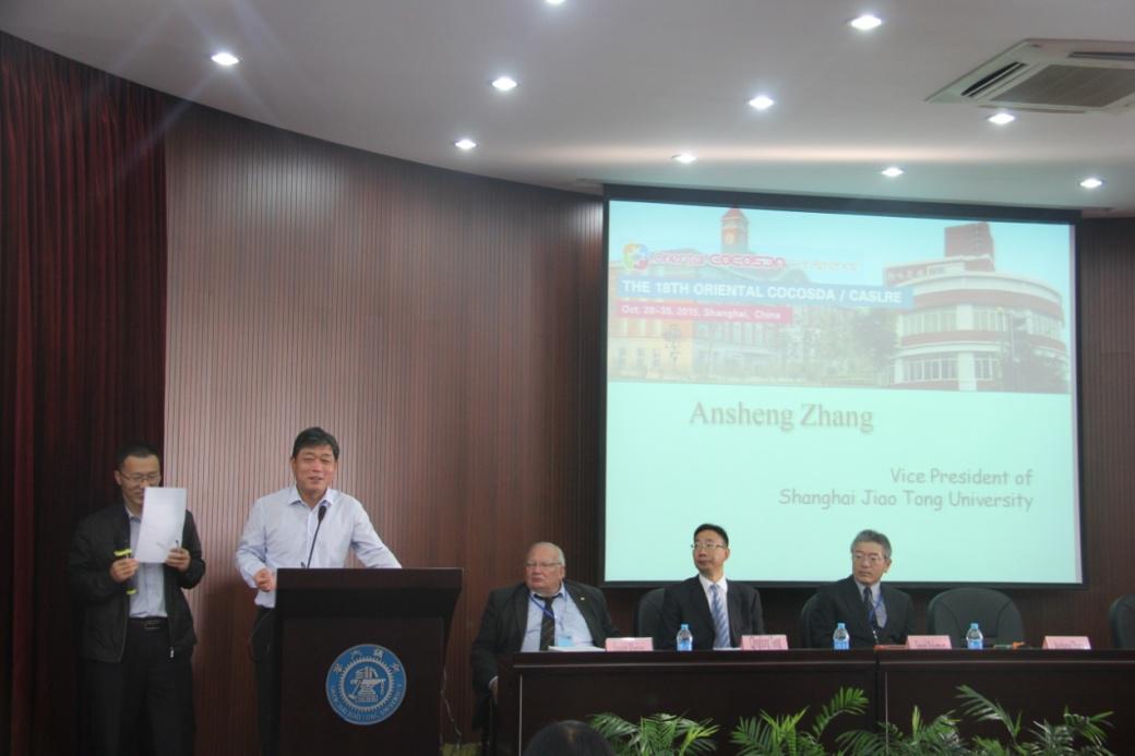 10月28日至10月30日,第十八届“口语语音资料库协调暨标准化国际研讨会东方分会”和“亚太口语语言研究和评价会议”(Oriental COCOSDA/CASLRE)在上海交通大学开元网页版召开。此次会议为期3天,参会人数达100多人。上海交通大学副校长张安胜、开元网页版副院长彭青龙、Oriental-COCOSDA 主席Satoshi Nakamura、科大讯飞副总裁胡郁、日本工程院士Hiroya Fujisaki教授,以及来自亚太各国的语言学专家学者参加了此次国际会议。