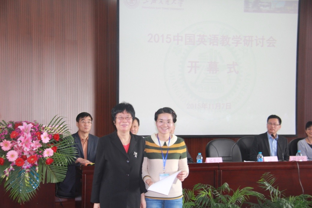 文秋芳会长在开幕式上致辞,她介绍了英语教学研究分会一年来在制度建设、国际合作、学术交流等方面所做的工作;并提到上海交通大学的外语教育历史悠久,在教学发展与改革、学术研究两方面均居于高等院校前列,希望此次英语教学研讨会能更好地促进国内同行之间、国内外学者之间的交流。最后文会长为本届会议优秀论文获奖者南开大学徐承萍老师颁发了获奖证书。