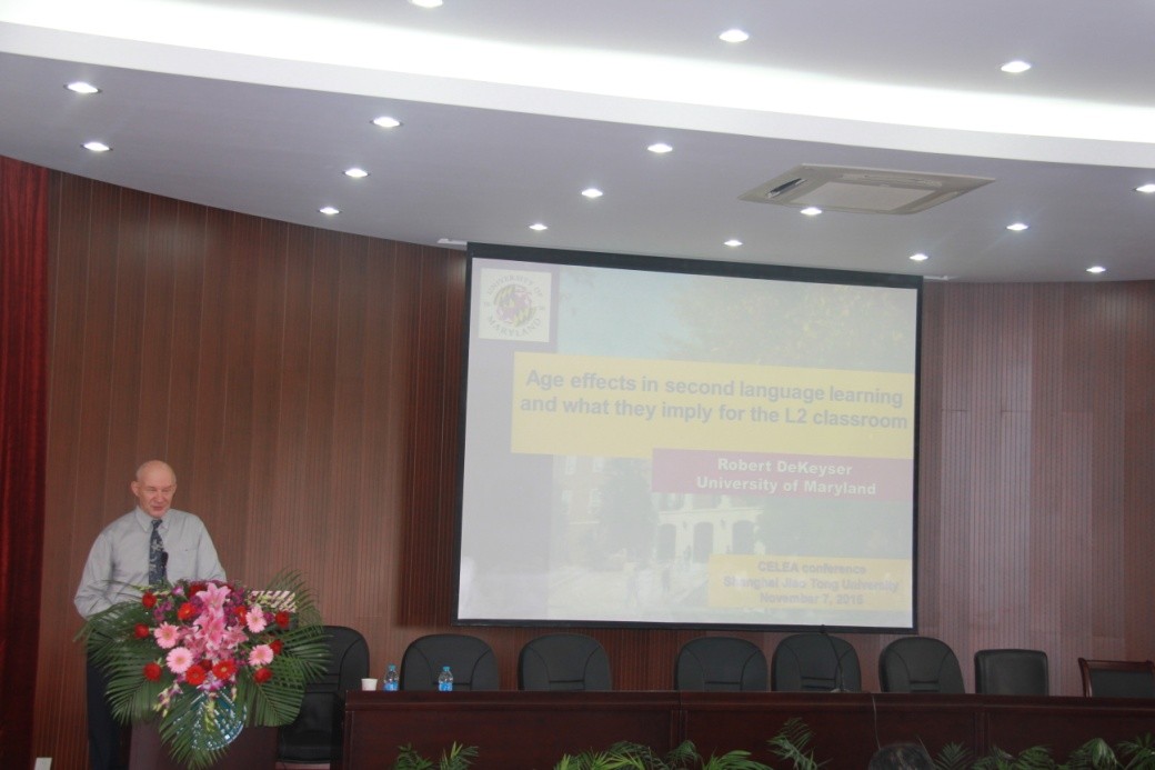 美国马里兰大学Robert DeKeyser教授作了Age effects in second language learning and what they imply for the second language classroom的主题发言,从多角度分析了年龄对语言学习的影响。他在发言中指出,儿童早年开始学习外语的优势仅在于语音、语调,而年龄大些的学习者在外语词汇、语法等方面的学习更有优势。如果只是为了得到纯正语音而让孩子过早学习外语不太必要,而低龄外语教学中师资情况的参差不齐更使得语音语调的习得效果也难以保障。