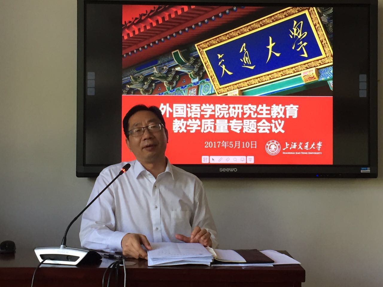 首先由开元网页版院长胡开宝教授发言。胡院长在整体上肯定了开元网页版研究生教育教学质量。他结合上海交通大学“立德树人,教书育人”工作部署,对我院研究生教学提出了新的要求。同时,他提醒各位老师应高度重视人才培养工作,提高研究生课程教学质量。近年来,我院研究生生源质量在持续改善,担任研究生导师的老师应尽心尽责,不能辜负学生们的期望。