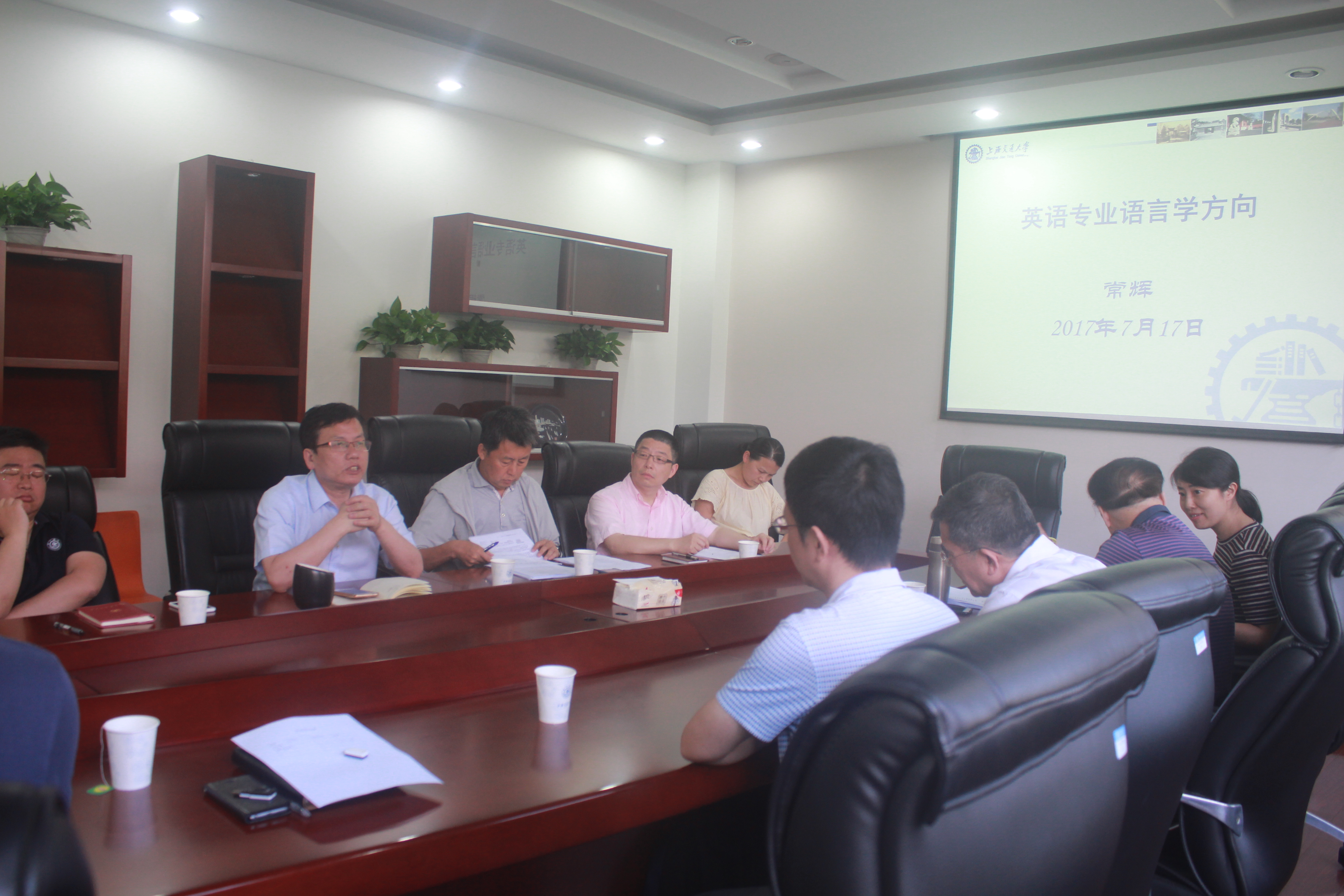 接下来,常辉副院长和陶庆副院长分别介绍英语专业新增的语言学方向和翻译方向培养方案制定的基本思路、过程和特色,着重介绍了基础课程的整合、个性化课程的共享、实践课程的增加以及课程内涵的提升等。英语系主任都岚岚、日语系主任吴保华和德语系主任张鸿刚分别介绍了目前运行的英语、日语和德语专业的基本情况和特色以及存在的问题。