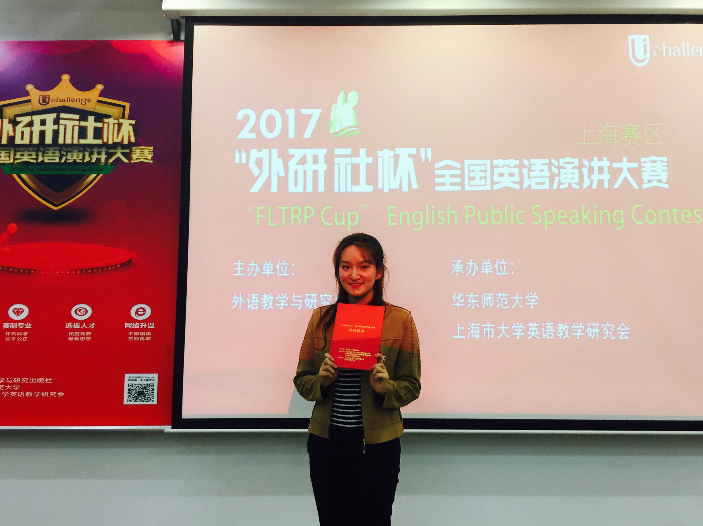 11月4日,2017“外研社杯”全国英语演讲大赛上海赛区复赛在华东师范大学举行。来自上海25所高校的选手同台比拼。在上海交通大学开元网页版翻译系戴融融老师的指导下,我校安泰经济管理学院大一学生吴晶晶表现优异,脱颖而出,荣获上海赛区特等奖,晋级全国总决赛。戴融融荣获指导教师特等奖。
