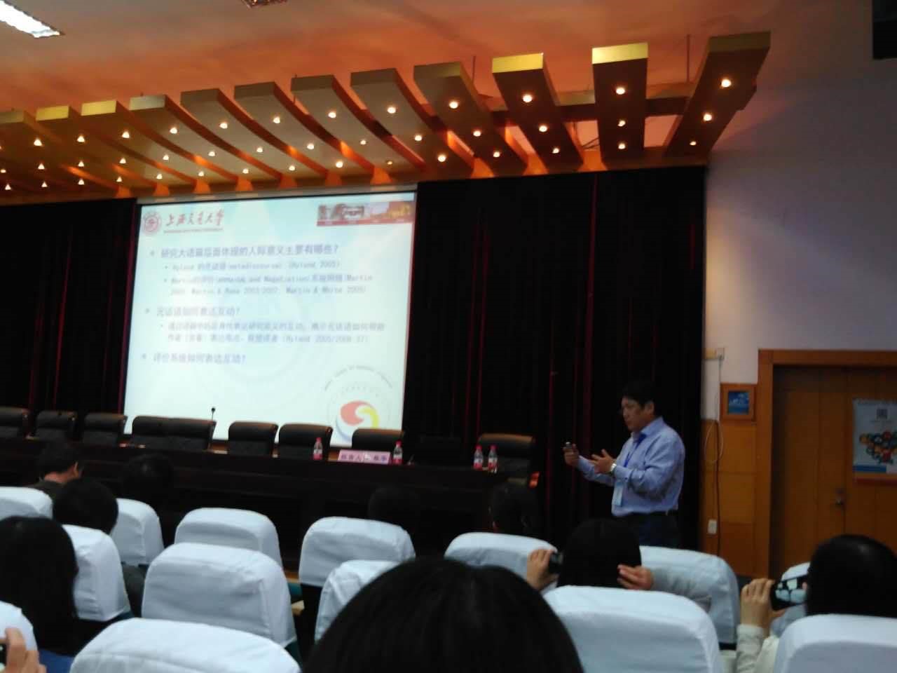 会上,王振华教授做了名为《评价系统和元话语共建的话语互动》的主旨发言。他介绍了向导型和卷入型话语互动,以及评价系统和元话语对人际意义的体现,分析比较评价系统和元话语资源的异同,探讨了二者如何整合为话语互动的语言资源。他指出对不同话语互动类型的语言实现资源和其在语篇中指向的研究有助于揭示话语互动的互动性,丰富人际视角下的话语互动研究。
