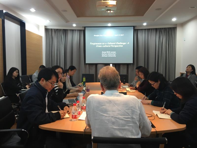 2017年4月14日下午,应尚必武教授的邀请,欧洲科学院院士、国际权威期刊Orbis Litterarum (A&HCI)杂志主编、教育部“长江学者奖励计划”讲座教授、丹麦奥尔胡斯大学Svend Erik Larsen教授莅临我院,并做了题为“Forgiveness as a Cultural Challenge: a Cross-cultural Perspective”的精彩报告。