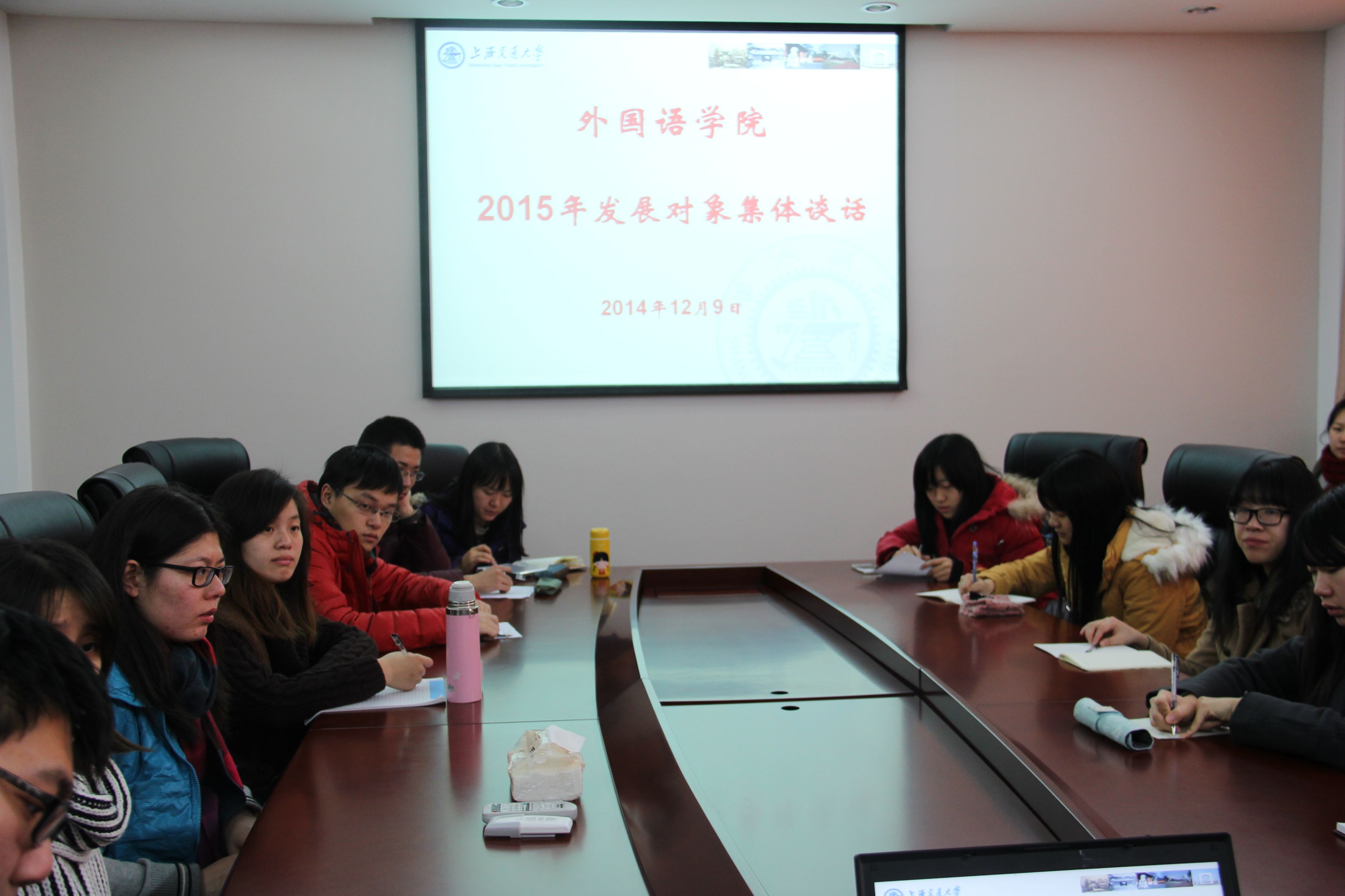 2014年12月9日,我院2015年预备党员发展对象座谈会在外语楼208会议室顺利召开。出席本次会议的有校特邀组织员何小凤,学工办主任、党建指导教师任祝景,学院本科生、研究生党支部书记以及2015年各位预备党员发展对象。