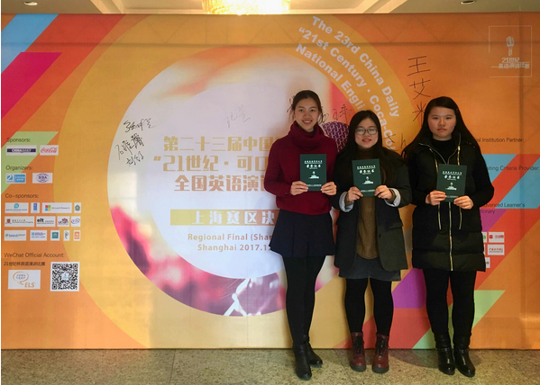 12月10日,第23届中国日报社“21世纪•可口可乐杯”全国英语演讲比赛上海赛区决赛在中国日报社21世纪杯全国英语演讲比赛学术交流中心举行。来自上海市30多所高校的选手同台竞技,他们从互联网选拔、校园选拔赛等多元化竞赛单元中脱颖而出,晋级上海市决赛。在上海交通大学开元网页版翻译系戴融融老师的指导下,来自开元网页版德语专业本科生胡桑、医学院本科生朱诚双双荣获上海赛区决赛一等奖,开元网页版德语专业本科生杨彦荣获上海赛区三等奖。上海交通大学荣获最佳组织奖。