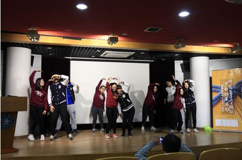 本期活动以实验室/课题组为单位,邀请了四支来自不同院系的研究生导学团队参加。活动一开始,四支队伍分别展示了队名、队歌、队旗等内容,充满了学院和团队的特色。言语-语言-听力研究团队用语音软件调制成的背景音乐《分手修炼手册》,为观众带来了一段精彩的舞蹈,把现场气氛推向高潮。