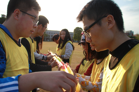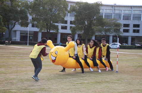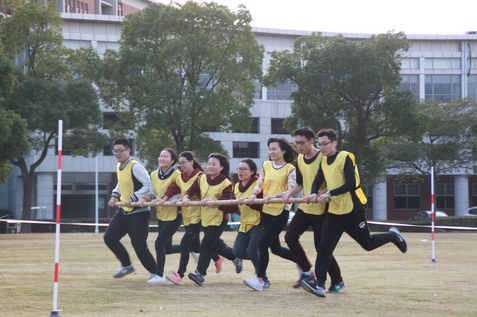正式活动共设有竞速毛毛虫、旋风跑、月球漫步、能量传输、万众一心五个项目,重在考验团队的协作和配合。我院师生虽然力量上略占下风,但凭借着团结一致的作风和细致谨慎的态度,在多个项目中实现逆转。尤其在月球漫步项目中,团队师生虽然在首轮比赛中遇到了挑战,但经过战术调整以及场内场外的完美配合,在第二轮获得了小组第一。