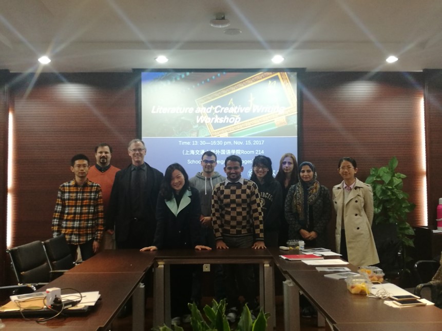 11月14日下午,在外院文学、创意写作与翻译中心主任Jonathan Hart教授的组织安排及博士生武尚同学的协助工作下,本学期的“文学与创意写作”工作坊成功举办。本次工作坊吸引了外院多名教师与外国留学生积极参与,并就各自的研究兴趣表述观点,相互交流,体现了极为融洽的中外文化交流的气氛。