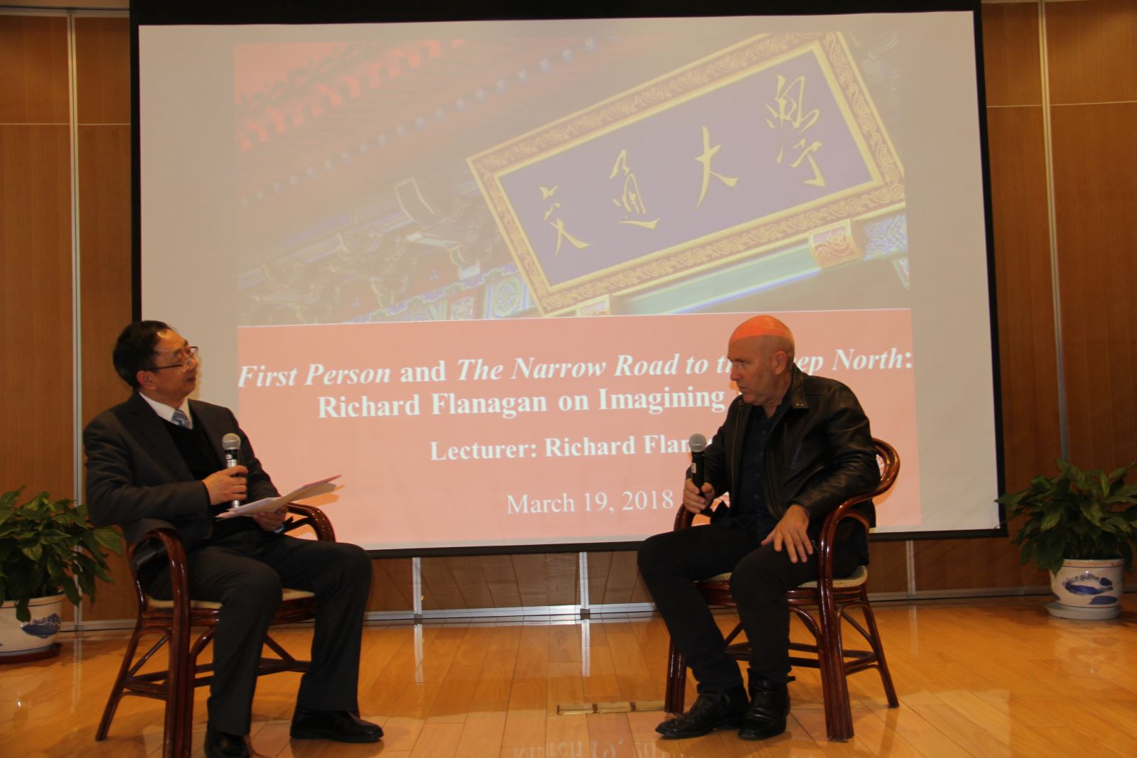 3月19日下午,澳大利亚最优秀的作家之一、布克文学奖得主理查德•弗拉纳根担任中澳作家对话交流活动嘉宾,做了题为“《第一人称》与《曲径通北》:弗拉纳根的历史想象”(First Person and The Narrow Road to the Deep North: Richard Flanagan on Imagining History)的讲座。