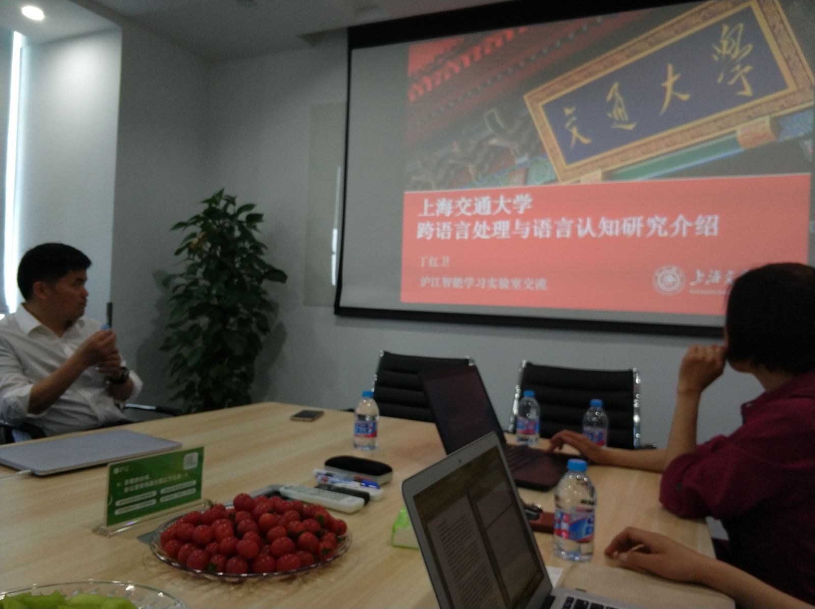 4月19日,受沪江公司智能学习实验室邀请,交大外院跨语言处理与语言认知基地言语-语言-听力研究中心丁红卫教授及团队、外院语言服务中心主任周彦嘉到访浦软大厦,双方进行了热烈交流,并对有今后的合作进行了探讨。