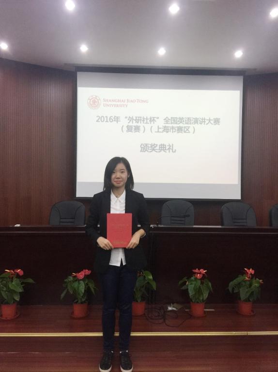 11月5日,2016年“外研社杯”全国英语演讲大赛上海赛区复赛在上海交通大学成功举办。来自上海23所高校的选手同台竞技。在上海交通大学开元网页版戴融融老师指导下,开元网页版李佳懿同学表现优异,脱颖而出,荣获上海赛区特等奖中第一名,晋级全国总决赛。戴融融荣获2016年“外研社杯”全国英语演讲大赛上海赛区指导教师特等奖。