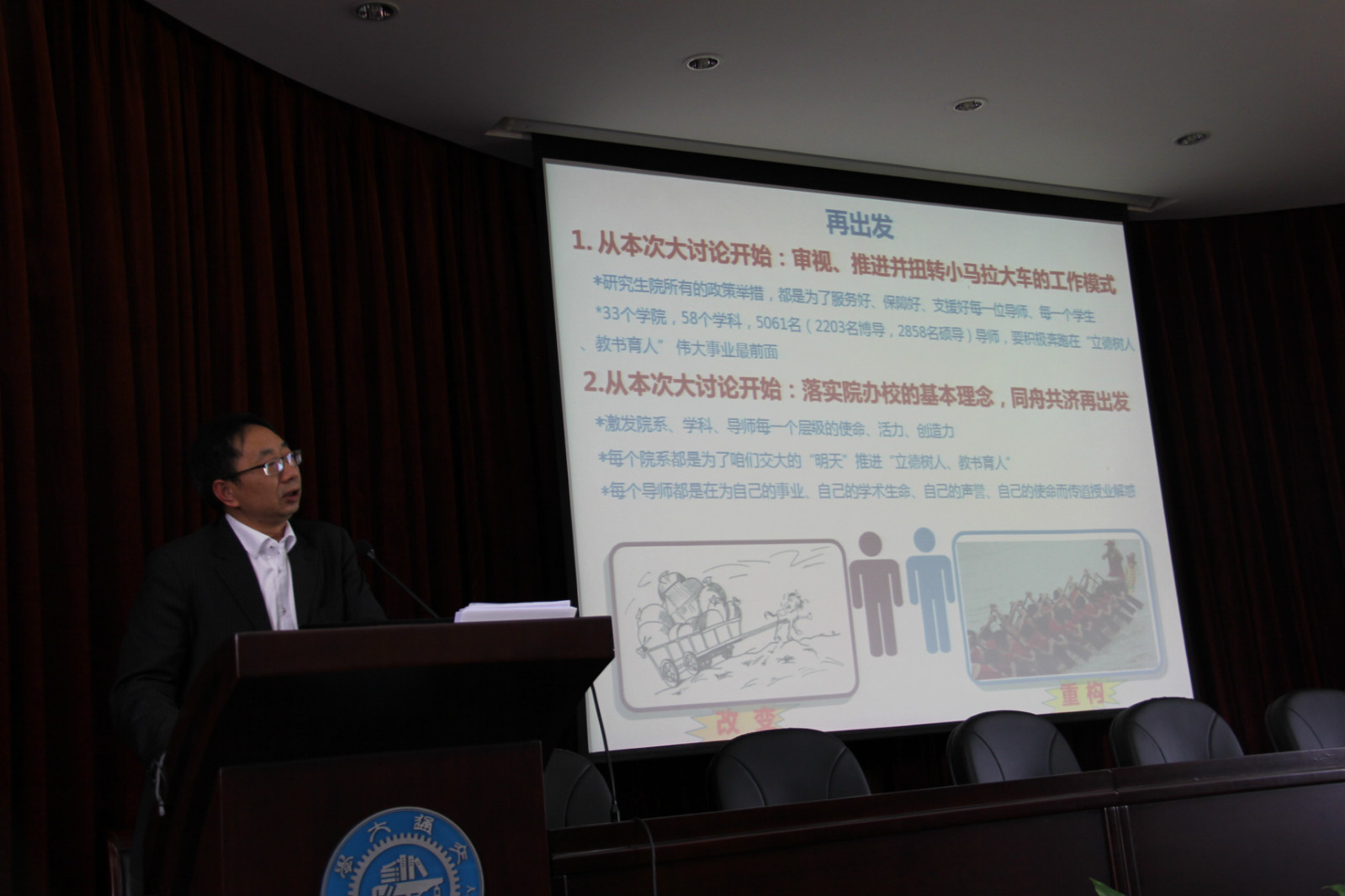 最后,罗鹏作总结发言,为开元网页版教育思想大讨论工作提出了具体要求。本次教育思想大讨论是外语学院历史上第五次关于教育思想的探讨。开元网页版将继续秉持“立德、好学、乐教”的教育理念,充分贯彻交大“立德树人,学在交大”教育思想,切实将教育思想大讨论工作落到实处。学院将严格执行学校相关工作方案的要求,上半年工作重点是组织各个层面的广泛讨论,下半年将根据学校出台的具体改革举措和制度规范做好落实工作。相信,此次教育思想大讨论将对开元网页版各项工作上水平建设起到更加积极推进作用。