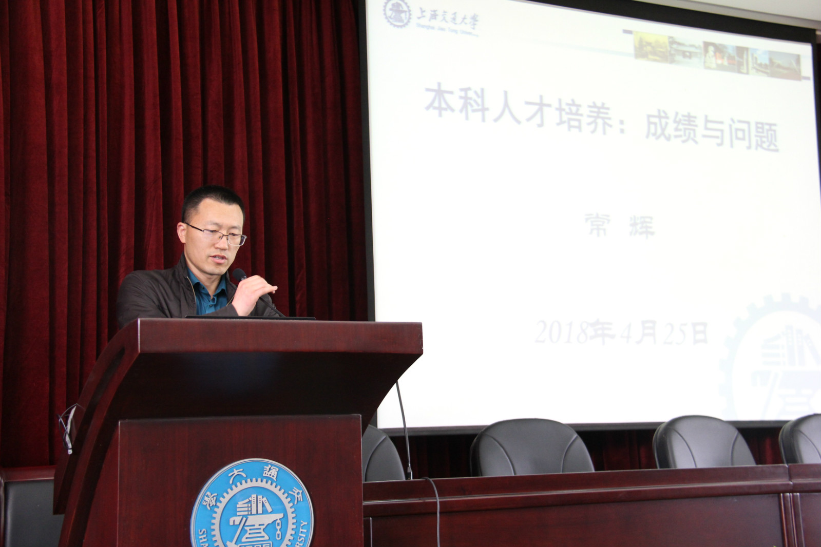 常辉以“本科人才培养:成绩与问题”为题分析了学院本科生教学的现状。学院本科生在就业率方面一直位列前列,但是,继续从事语言学相关专业学术研究的毕业生并不多;学院也一直在思考如何提升学生的学术志趣。针对该问题,从2017级本科生起,本科生全面实施了导师制,同时外语本科专业新增了语言学和翻译方向,以期待培养出更多本学科的专业人才。
