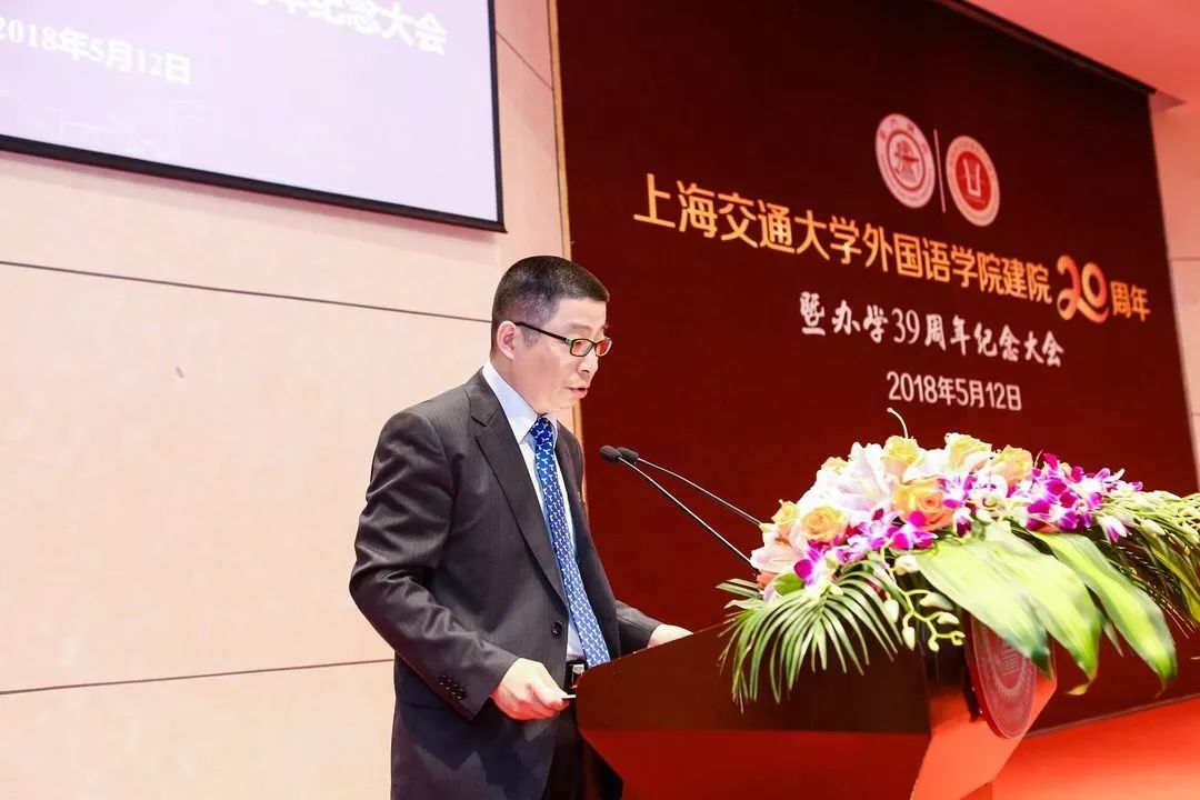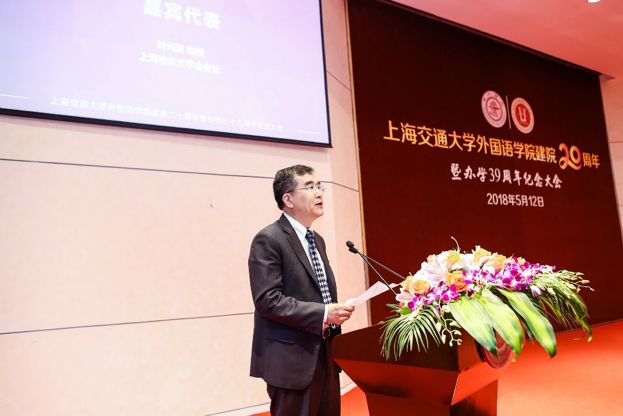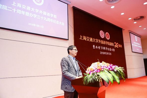 浙江大学文科资深教授、国务院学科评议组召集人许钧教授作为一位热爱外语学科,献身外语学科的老外语人,为上海交大外语学院办学39周年献上最热烈的祝贺。外院以改革进取的精神,敢为天下先,与日俱进,取得了令外语界同行注目和称赞的辉煌成就。同时,许钧教授提出几点希望,希望外语界同心协力,打造世界一流的外语学科;希望上海交大外语语言文学学科不忘初心,扎根中国大地办学,培养为实现中华民族伟大复兴作出贡献的合格的社会主义接班人;积极进取,求真务实,走国际化办学道路,真正让外语学科在人文学科中推进思想创新,拓展思想疆域,为国家的伟大复兴培养出优秀的人才。