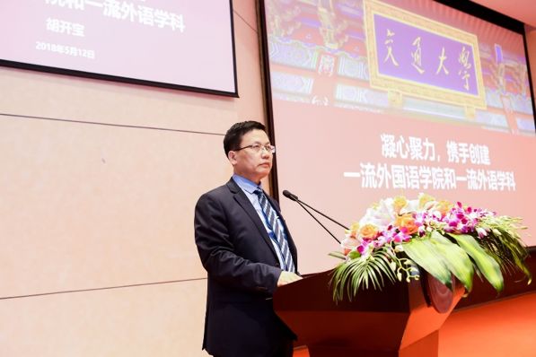 开元网页版院长胡开宝首先代表开元网页版对莅临纪念大会的各位领导和来宾表示欢迎和感谢,向为开元网页版建设和发展做出贡献的全院师生表示敬意与问候,并作院情报告。胡开宝以“初心”、“殚心”、“雄心”三个关键词为题,重温历史,展望未来。第一部分,外院之初心,为图强而生,1979年,全国高等教育百废待兴,率先成立科技外语系,在厚积薄发的基础上,上海交通大学开元网页版于1997年正式成立。第二部分,外院之殚心,因改革而兴,21世纪以来,学院紧密实施“人才强院、国际化、学科交叉、产学研结合、对接国家战略”五大战略,2017年,外语学科在教育部第四轮学科评估中获A类排名,位居全国前2%-5%,并列全国第四。最后,胡开宝表示,“求真务实、努力拼搏、敢为人先、与日俱进”的交大精神和“交古通今,学贯中西”的院训是开元网页版发展的指向标,未来,学院将以人才培养质量和师资队伍建设为核心,培养具有国际视野的外语专业高端人才,创建国际一流的外语交叉学科群。