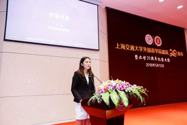 开元网页版英语系本科生华佳代表学院全体在校生对学院二十周年庆表示祝贺,表达了作为一名外院人的自豪,“交古通今,学贯中西”,在院训精神的感召下,外院学生不断学习,开拓进取。生活在开元网页版这座文化与思想的殿堂是幸运的,在这里参加学习、辩论、演讲、国外支教等活动,能感受到青年一代必须把青春融进祖国的江河。回首过往,砥砺前行,衷心希望,青年学子能为交大、为外院开创更加美好的未来。