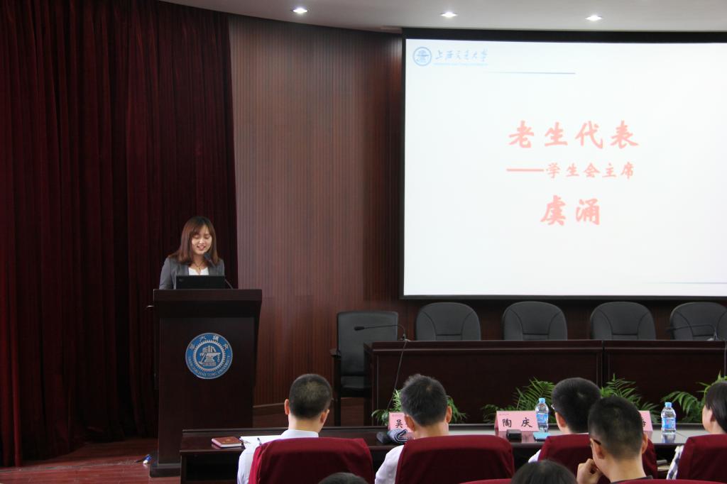 随后的研究生入学教育会上,张红梅分享了如何度过研究生生活的几点建议。强调了学习的重要性,要把学习放在首要位置,做好学习规划,向导师、学长学姐们学习,珍惜学校的良好环境和丰富资源;同时会学习,更要会做人,同为外语学院大家庭的一员,要像待家人一样对待身边的人,能担当、不计较,在细节之处彰显品德。