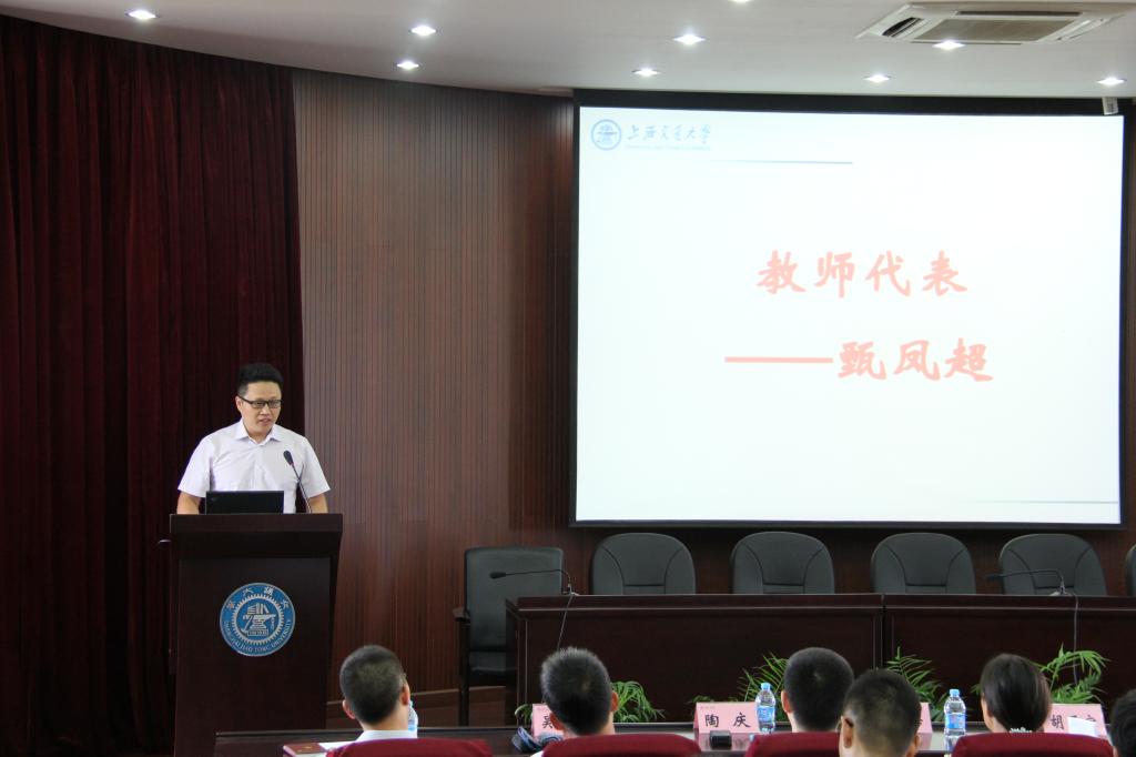 甄凤超作为教师代表发言。他引经据典,告诫新生们要珍惜青春,莫等青春耗尽才去追忆。要珍惜来之不易的学习机会,认真思考自己的未来和方向,“取乎其上,得乎其中;取乎其中,得乎其下”,志向高远才能收获成功人生。