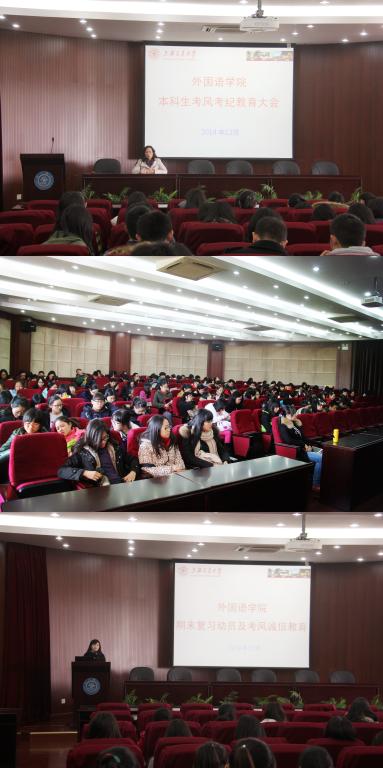 12月10日,全体研究生学风建设大会举行,院党委副书记张红梅主持会议;12月25日,本科生学风建设大会举行,大一年级会议由张红梅主持,大二、大三、大四年级会议由学院学工办主任任祝景主持。会议根据不同年级学生的不同学生特点、学业情况、认知水平,有针对性地开展教育工作。对学校的考试纪律进行了强调说明,向同学们提出了严格的要求,希望同学们认真备考、诚信考试。