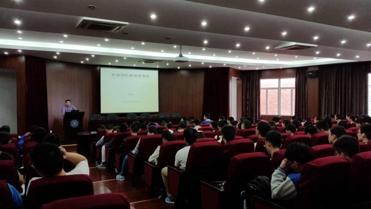 10月14日下午,开元网页版大学英语第一教学部在学院多功能厅举办“2015级新生英语学习指导讲座”。讲座特别邀请了外语学院富有教学实践经验的陶庆、沈炎、胡文杰三位老师担任主讲。