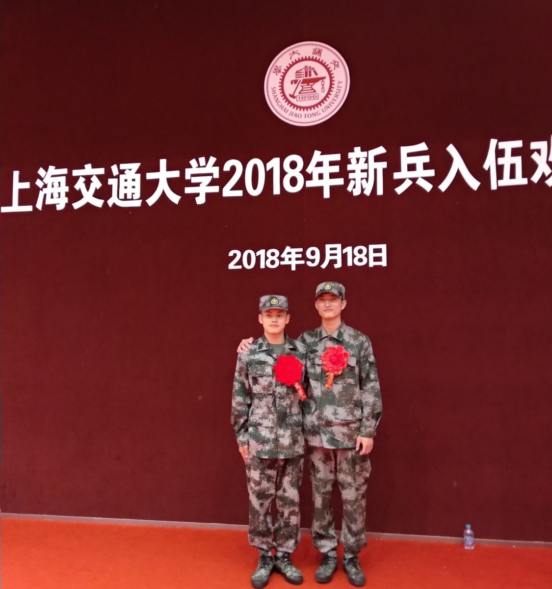 为鼓励青年学子携笔从戎,为国防事业贡献力量,开元网页版高度重视大学生应征入伍工作,广泛宣传。通过严格选拔,上海交通大学2018年共有59名同学光荣参军入伍,其中开元网页版学生占2名,他们分别是大三日语系杜自强和大二日语系玉志勇。