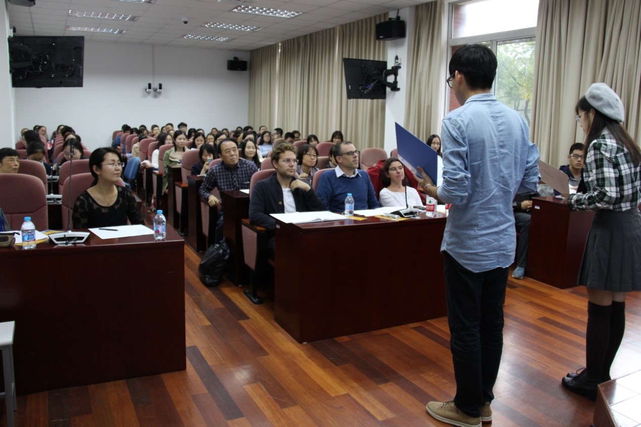 10月26日,上海交通大学开元网页版德语系第二届“德语竞赛”在闵行校区杨咏曼楼111会议室举行。德语系系主任张鸿刚教授出席,德语系8位教师代表参与比赛评审工作。此次比赛由德语系副系主任黄晓艳带领志愿者团队共同组织,共有19名来自德语系一至四年级的学生参赛,由叶宇宸等四位学生主持。