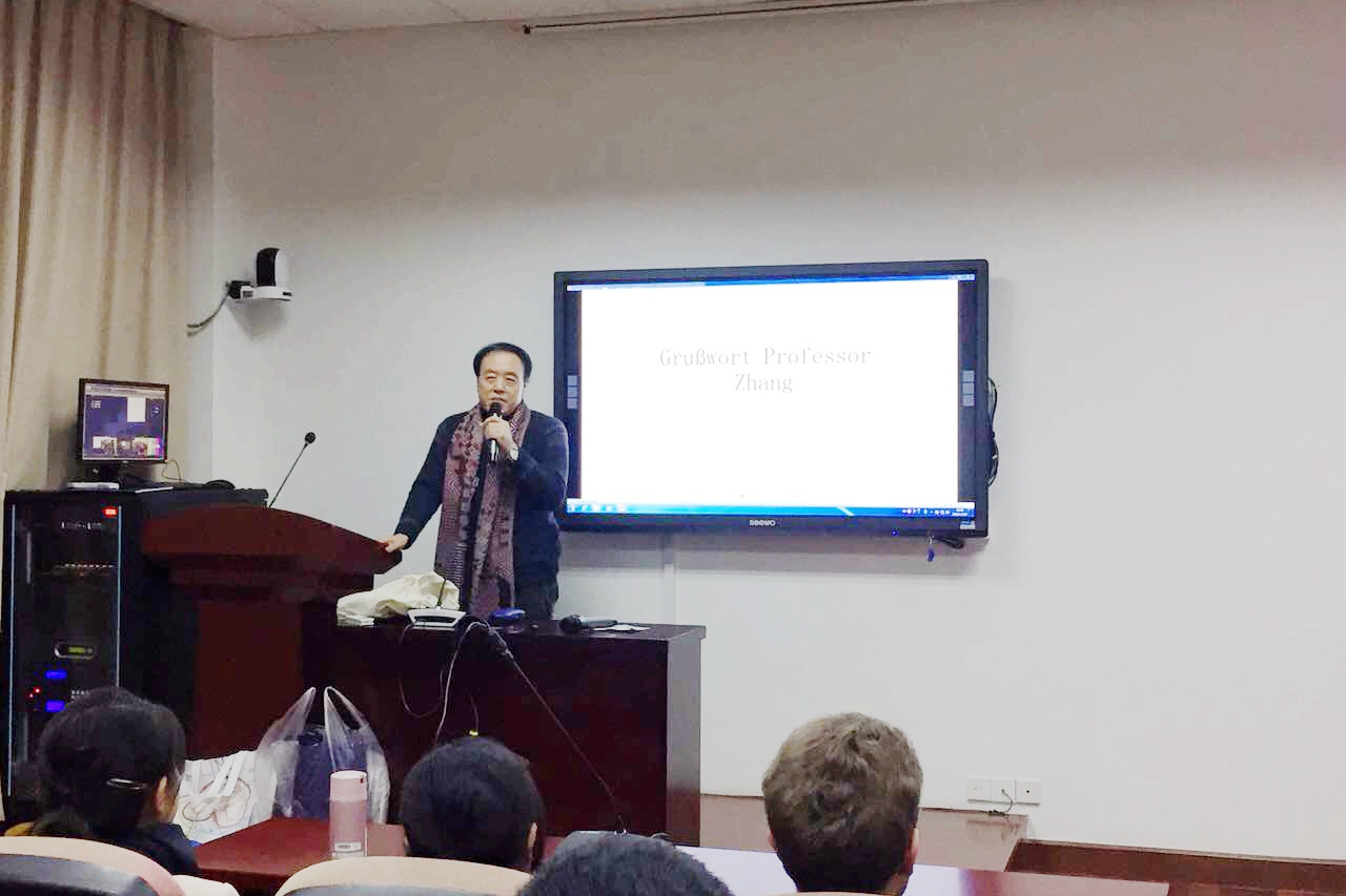 12月14日,上海交通大学德语系写作比赛颁奖晚会在外语学院举行,德语系全体教师和学生参加晚会。该活动由德国学术交流中心(DAAD)专家、德语系外教Marc Esser组织,全体德语教师担任评委,德语系一至三年级的同学和电子信息与电气工程学院德语班的同学一起参加了此次“Kunstwerk”(艺术作品)的德语写作比赛。
