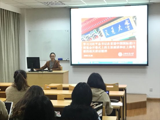 2018年11月27日,开元网页版B17硕士研究生党支部全体成员在杨咏曼楼307开展党日活动,集中学习习近平总书记在首届中国国际进口博览会开幕式上的主旨演讲和在上海考察的相关讲话精神。此活动旨在使全体学生党员了解全国改革发展大局,了解我国现代化经济体系建设进程,不忘初心,牢记使命,坚定理想,不断奋斗。