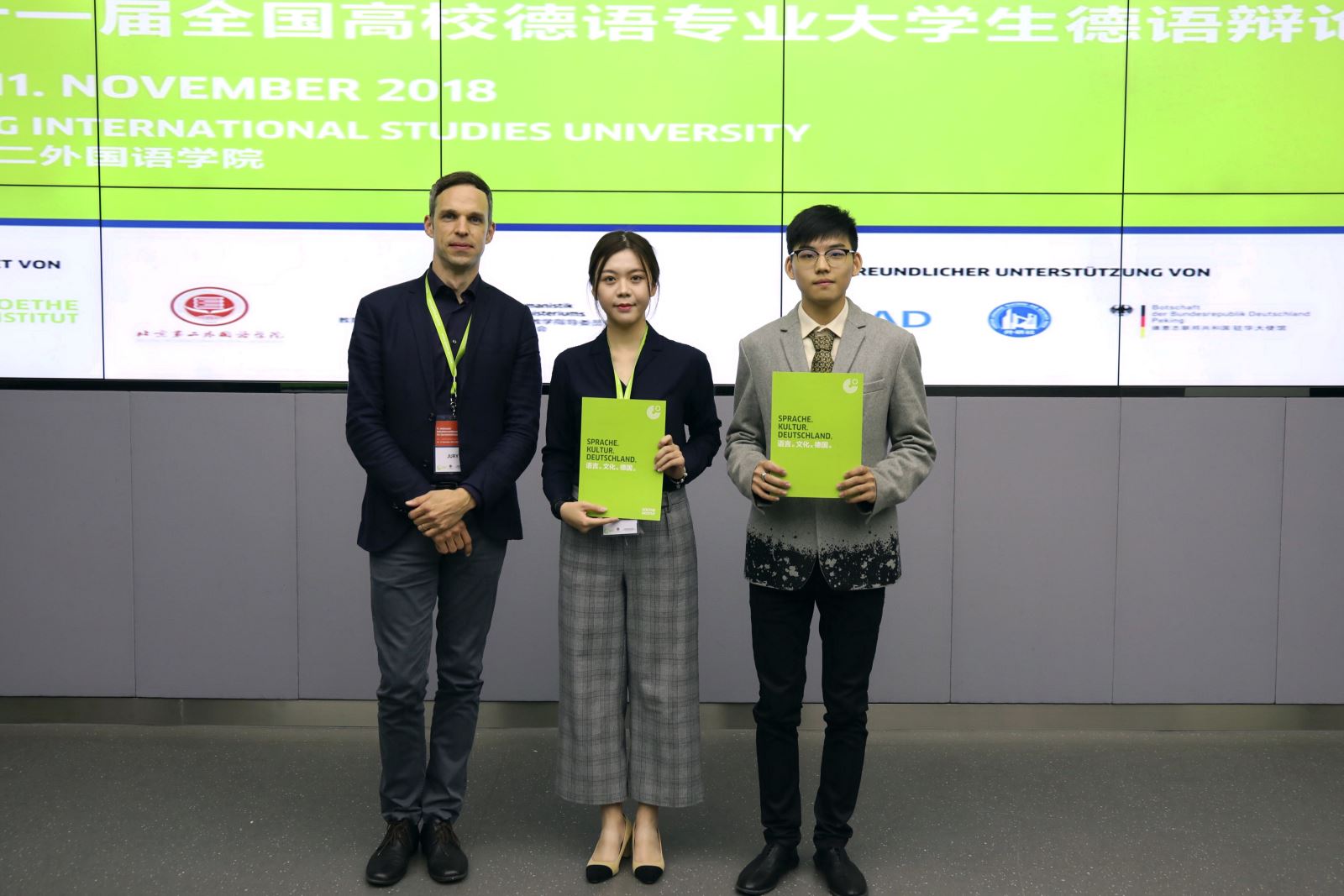 2018年11月,由教育部高等学校德语专业教学指导委员会和歌德学院联合主办的“第十一届全国高校德语专业大学生辩论赛”在北京第二外国语大学举行。来自全国48所高校的96名德语专业大学生参与了该项赛事,开元网页版15级本科生夏若婷荣获冠军。