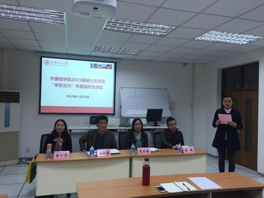 11月19日下午,开元网页版15级硕士党支部召开了“学在交大”专题党组织生活会,讨论并学习“学在交大”的基本内涵与意义。本次会议邀请到了学指委研究生工作办公室主任张仁伟莅临指导,学院党委副书记张红梅、英语系副教授朱一凡、学生党建工作负责人刘延出席了会议。会议由党支部书记徐灿主持。