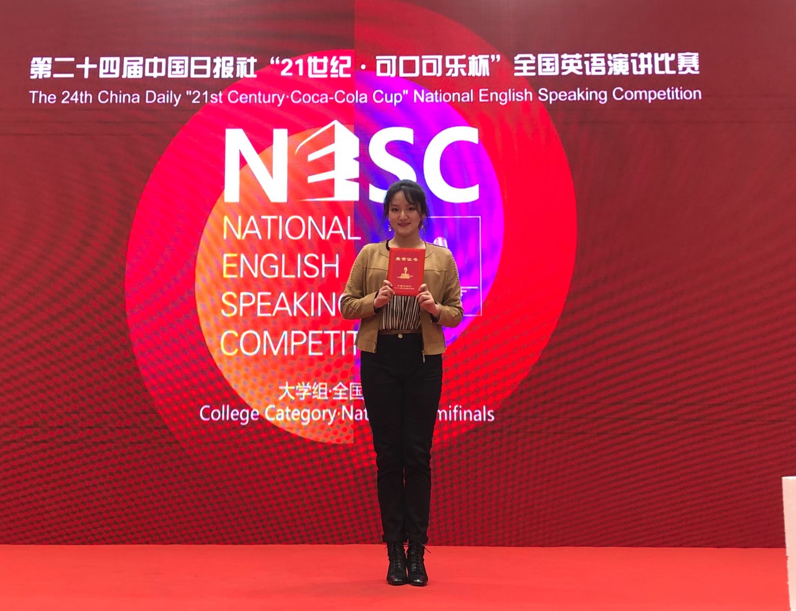 3月22日,2018“21世纪·可口可乐杯”全国英语演讲大赛全国决赛在杭州国际博览中心隆重举行,来自全国各高校的优秀选手同台比拼。在开元网页版翻译系戴融融老师的指导下,上海交通大学安泰经济管理学院吴晶晶同学表现优异,荣获全国二等奖。戴融融老师荣获指导教师奖。