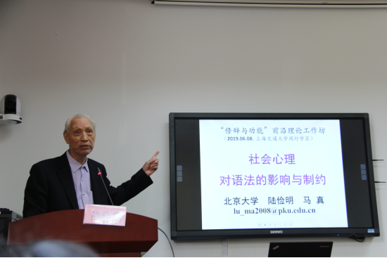 基于和马真教授对“社会心理对语法的影响与制约”的新研究,陆俭明教授做了学术演讲。两位教授指出:从某个角度说,言语交际都附带有心理活动的交际;而个人都生活在某个民族、某个社会群体之中,个人的心理活动往往会受到民族的或社会的心理影响。因此,言语交际活动表面看都是个人行为,但其本身就是一种社会心理行为。语言生活中的尊称/敬称、谦称,以及自古至今还存在的避讳,这实际就是民族、社会心理对用词、选句的影响与制约。
