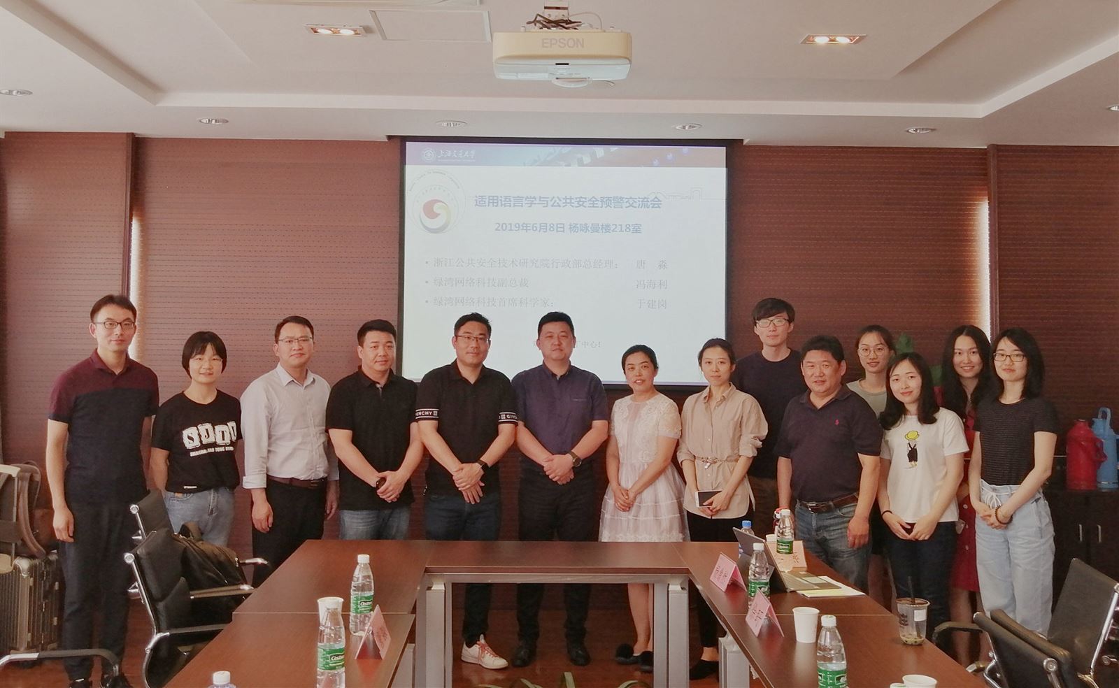 2019年6月24日,上海交通大学马丁适用语言学研究中心(马丁中心)在杨咏曼楼218会议室举办适用语言学与公共安全预警交流会。浙江公共安全技术研究院行政部总经理唐淼先生、绿湾网络科技副总裁冯海利先生、绿湾网络科技首席科学家于建岗博士莅临交流会。上海交通大学开元网页版院长胡开宝教授、以及王振华教授、徐盱教授、赖良涛副教授、杨翕然博士、王冬燕老师、杨东东老师,博士研究生李佳音、林苡、崔欣,以及郑州大学张庆彬博士等出席交流会。