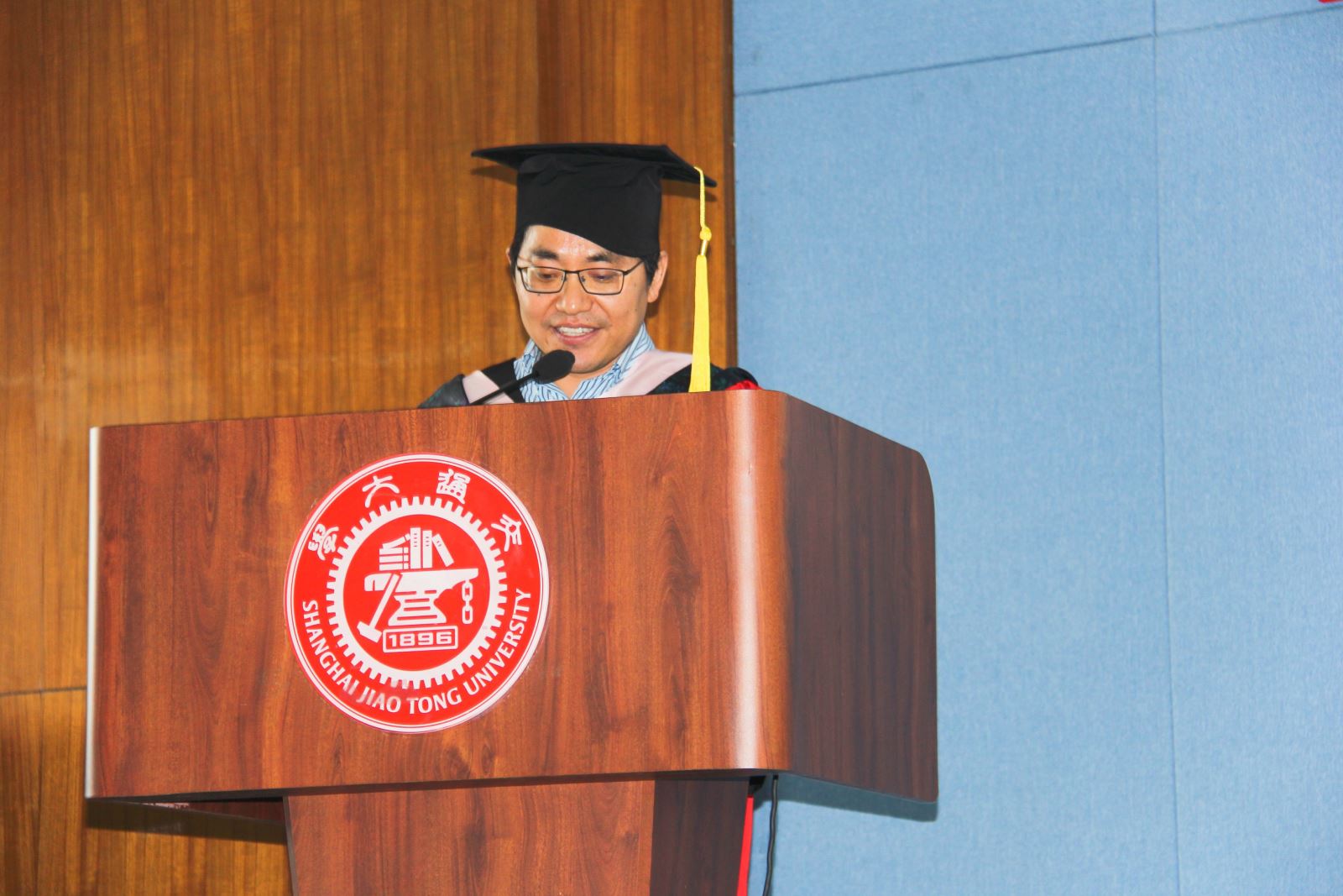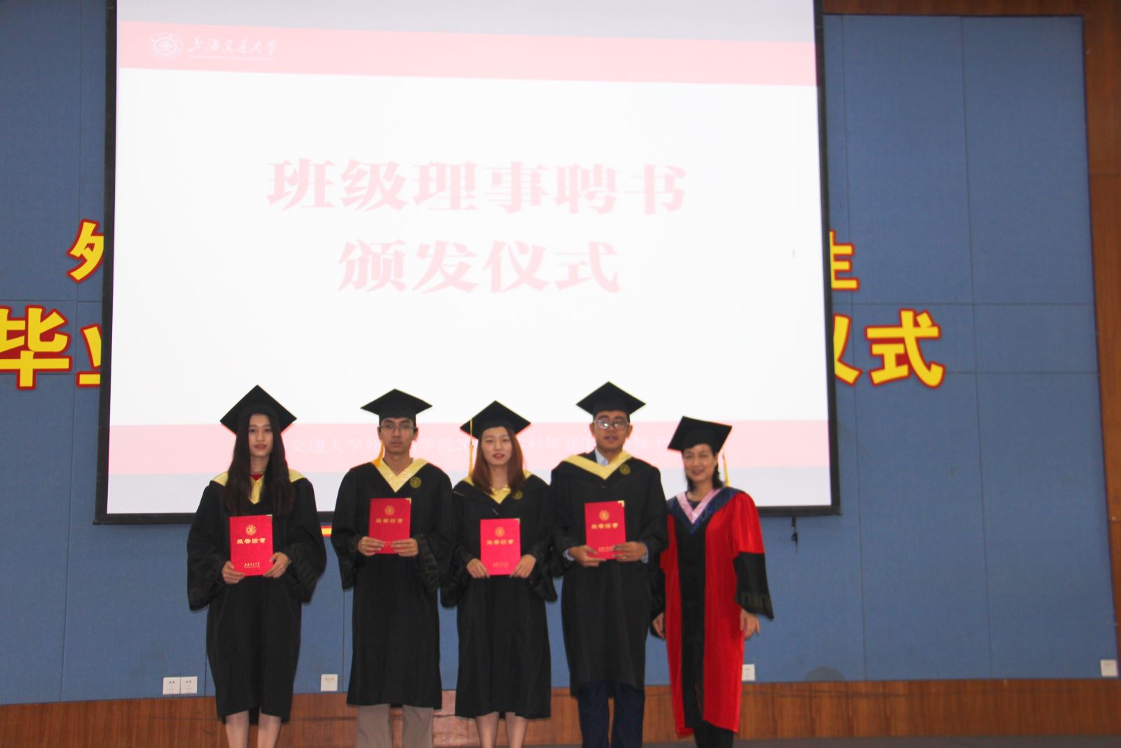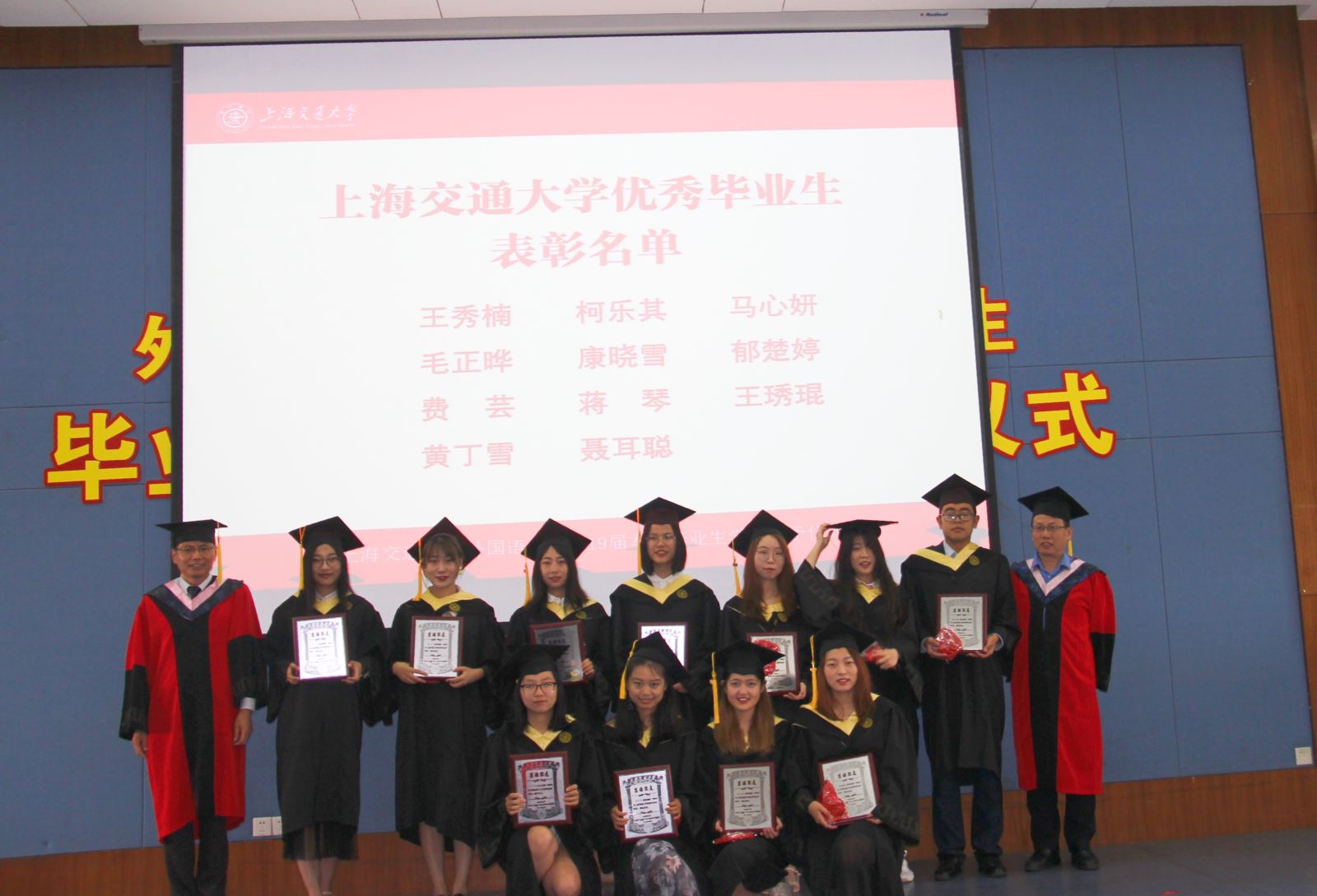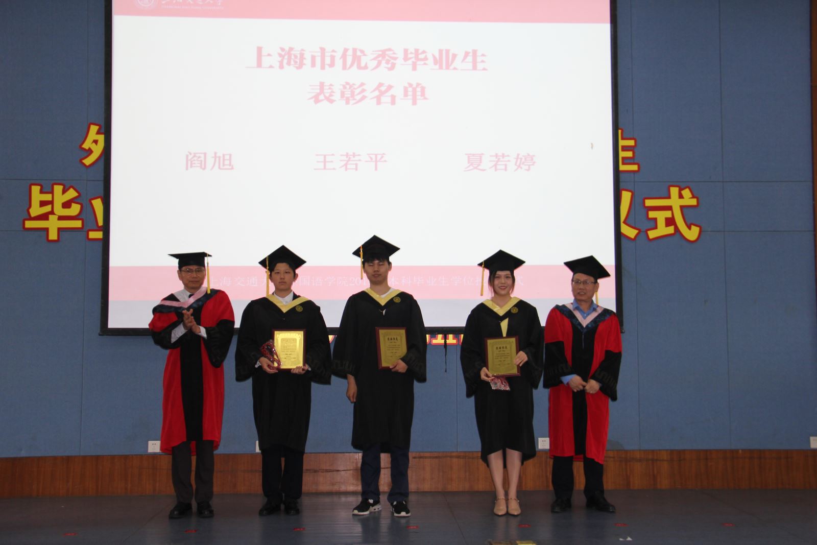 外国语学院党委书记丁剑宣读了上海交通大学开元网页版荣获“2019年上海市普通高等学校优秀毕业生”和“2019年上海交通大学优秀毕业生”称号的毕业生名单。并与胡开宝共同为优秀毕业生颁发奖牌和荣誉流苏。