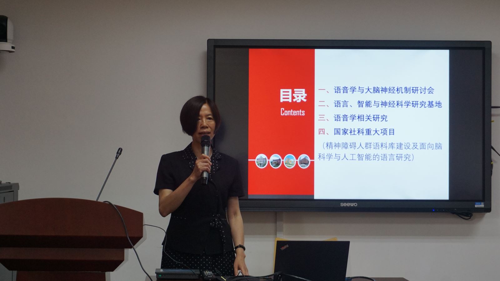 开幕式结束后,上海交通大学语言、智能与神经科学研究基地丁红卫教授介绍了交大外院语音学的跨学科研究及国内外合作研究,包括本次语音学与大脑神经机制研讨会的发展历史;语言,智能与神经科学研究基地作为语言智能领跑外语学科发展的落成与报道;言语语言听力中心荣获杨咏曼校董开元网页版发展增设基金;以及基地的物理空间规划和科普展示区域。随后,丁教授介绍了其团队的国家社科重大项目,即“精神障碍人群语料库建设及面向脑科学与人工智能的语言研究”,重点研发基于语言特征的精神障碍早期诊断技术,加快科研成果转化与推广应用,计划在脑科学,脑疾病早期诊断与干预,类脑智能器件三个前沿领域取得国际领先的成果。