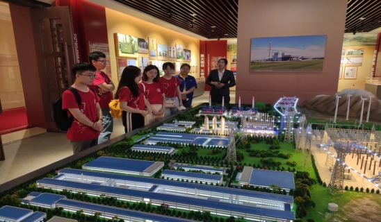 经过两天的火车旅程,实践团首先到达新疆昌吉特变电工开展学习交流。7月25日一早,在特变电工商务区展厅讲解人员的带领下,同学们首先参观了园区的企业展厅。从讲解员生动的讲述中,实践团成员了解到特变电工从30年前一家露天小厂开始,一路艰苦奋斗、积极创新,秉承“特别能吃苦,特别能战斗,特别能奉献,特别能学习”的四特企业精神,装备中国,装备世界,成为中国变压器行业可靠的领军企业。在短短30年间,特变电工走出新疆,跨出国门,走向世界,致力将中国先进的电力建设经验与世界分享。看着展厅里一件件意义非凡的展品,聆听特变电工一路走来的艰辛,实践团成员们都不由地发出赞叹。