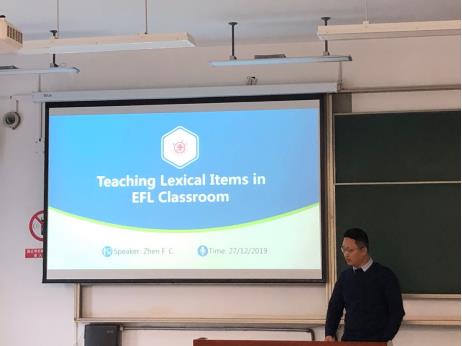 甄凤超老师的报告题目是“英语词项教学:思想与方法”。他认为在教学中应用语料库短语学目前还比较少,但具有潜力。并以此切入,探讨了语料库短语学的理论框架以及与英语教学方法的结合。