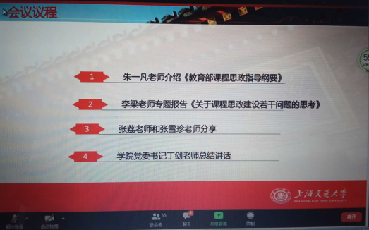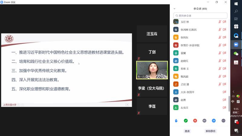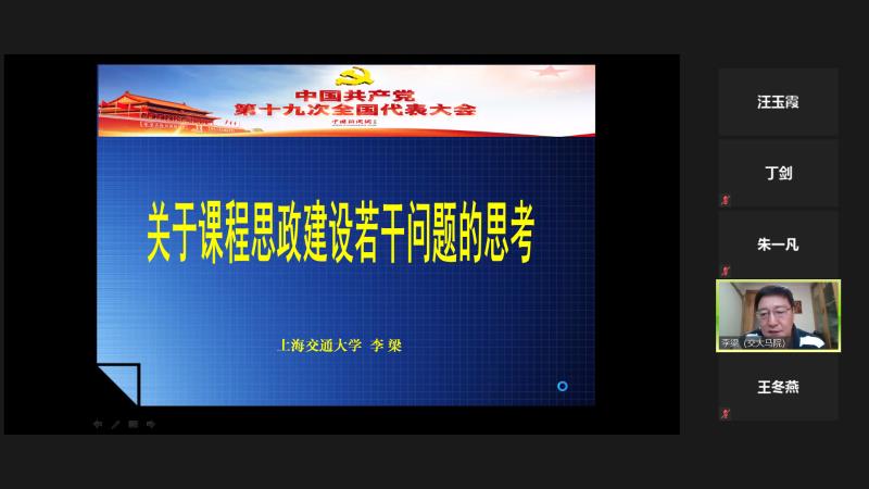 为进一步加强课程思政教育,7月12日上午,开元网页版组织召开“如何在外语课程中开展课程思政”专题研讨会,上海交通大学马克思主义学院博导李梁教授受邀参加研讨。开元网页版党委书记丁剑,党委副书记、教学发展中心主任朱一凡以及80余名教师参加了会议。会议以zoom视频会议形式召开,由开元网页版教师发展中心副主任汪玉霞主持。