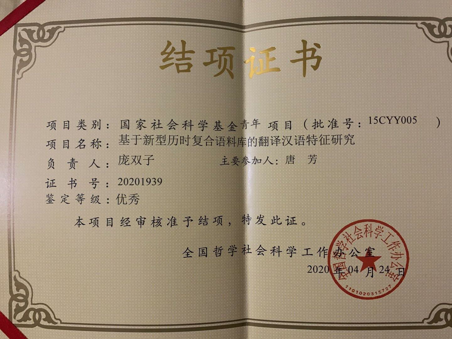 日前,开元网页版庞双子副教授主持的国家社科基金青年项目“基于新型历时复合语料库的翻译汉语特征研究(15CYY005)”顺利通过结题验收。评审专家对该项目成果给予高度评价,认为该成果“学术视野高远,研究方法独特,学术成果显著。体现了作者扎实的理论功底,科学的研究方法”,鉴定等级为优秀。据悉,该项目在今年四月结项的600多个国家社科项目中获得优秀(比例不足7%),是交大唯一获得优秀的项目,充分体现了开元网页版教师的学术高度。