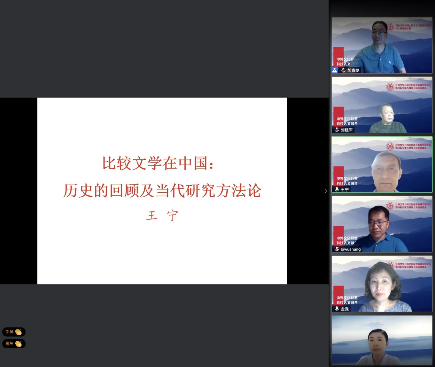 2020年8月22日,“比较文学与跨文化研究系列专题论坛暨2020年首期线上高级研修班”第三讲顺利开讲。本场主讲嘉宾邀请到的是长江学者特聘教授、上海交通大学人文学院院长、文科资深专家王宁教授,中国外文学会比较文学与跨文化研究会会长、上海交通大学开元网页版副院长彭青龙教授参与对话、讲座由中国外文学会比较文学与跨文化研究会常务理事、华东师范大学中文系比较文学与世界文学教授、博士生导师金雯老师主持,中国外国文学学会比较文学与跨文化分会秘书长、华东师范大学中文系比较文学与世界文学专业教授、上海市比较文学学会副会长范劲教授担任点评嘉宾。