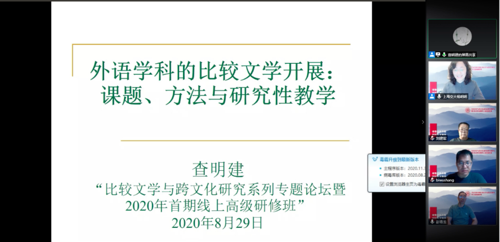 “比较文学与跨文化研究系列专题论坛暨2020年首期线上高级研修班”第五讲圆满结束。