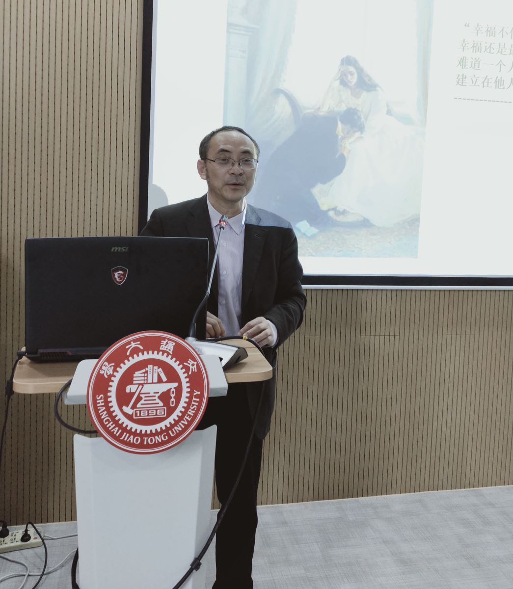 10月28日下午,中国社会科学院外国文学研究所研究员、副所长吴晓都应邀在开元网页版107多功能教室作学术讲座,讲座主题为“心灵辩证法——托尔斯泰与《安娜·卡列尼娜》”。上海交通大学开元网页版副院长彭青龙教授、尚必武教授、杨明明教授、林玉珍副教授、吴攸副教授、王哲希博士以及60余名学生参加了此次讲座。讲座由彭青龙主持。