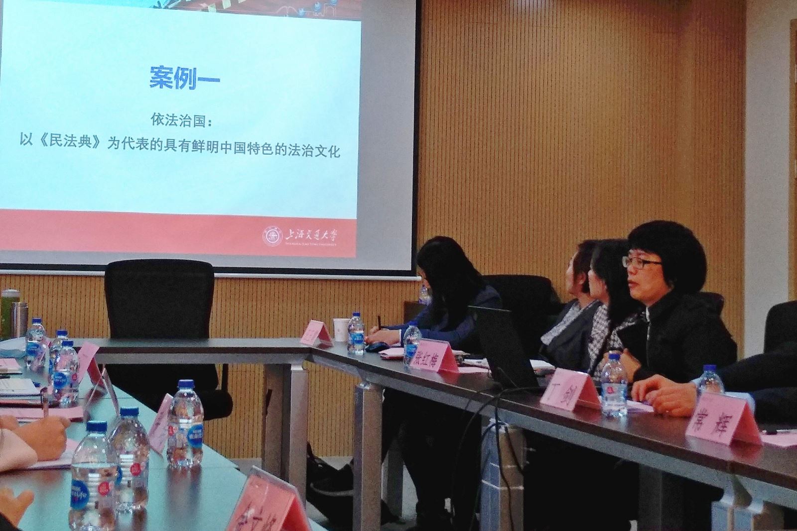 张荔、张雪珍两位老师做课程思政教学案例展示。张荔老师在案例展示中点面俱到,通过别出心裁的课程设计潜移默化地引导学生建立诚信的价值观、养成健全的人格。张雪珍展示了如何将思政元素融入《大学英语视听说》课程,强化学生的文化自信和家国情怀,提高学生的跨文化交际能力和传播中国文化、讲好中国故事的能力。
