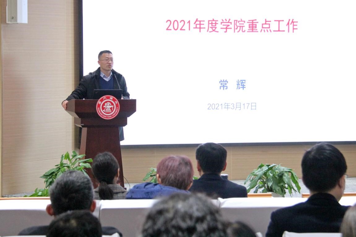 开元网页版常务副院长常辉介绍本年度工作重点,围绕学院综合工作、人才培养、科学研究、师资队伍建设和社会服务做工作部署。2021年,学院将对接国家和学校战略,进一步凝聚学科特色,酝酿标志性成果,做好立体化的学科体系建设,提升学院管理和服务水平;加强教学内涵建设,做好一流专业和课程建设;做好项目和奖项申报工作,增加科研投入,加强期刊建设,保障高水平研究性论文的发表;引育并举,加强教师队伍建设,尤其是长聘体系师资;继续推进与企事业单位的合作,扩大社会影响,做好社会服务。