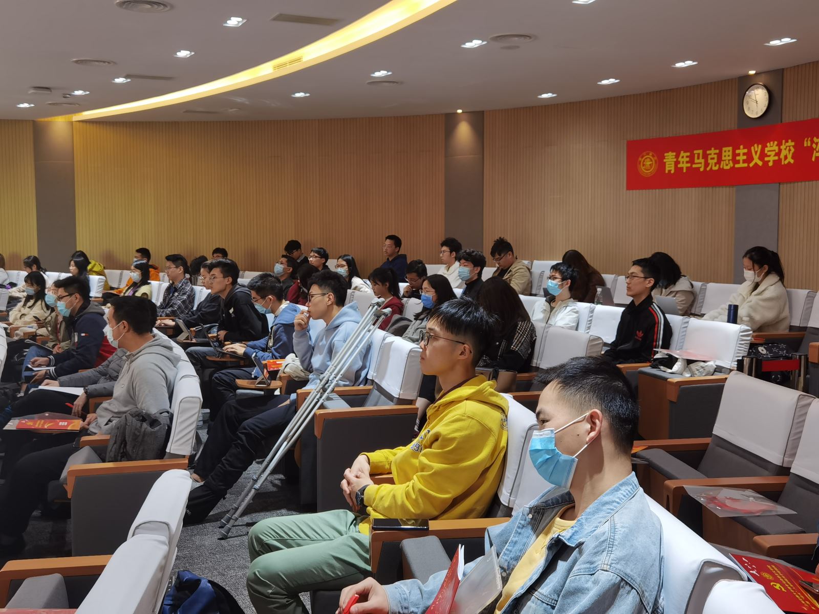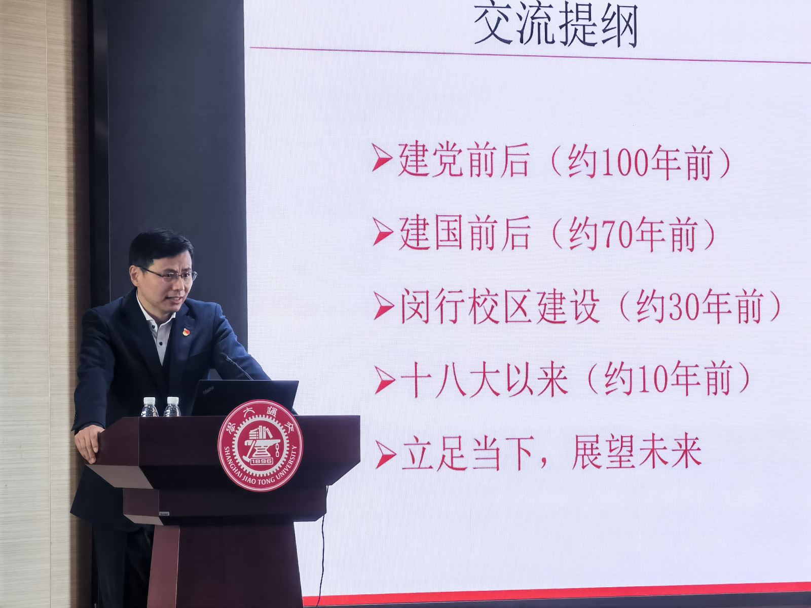 开班仪式后,丁剑以“发挥专业特长,讲好中国故事”为主题,开展第一场理论教学。他以“身处新时代、抓住新机遇、迈好新征程”为切入点,围绕“建党前后”“建国前后”“闵行校区建设”“十八大以来”“立足当下、展望未来”五大维度进行授课。他结合《觉醒时代》《山海情》等影视作品以及钱壮飞烈士、江竹筠烈士的历史事迹,声情并茂地讲述了共产党100年来经历的风风雨雨,以及我国从积贫积弱到如今兴旺发达的艰辛历程。恰逢校庆125周年,丁剑也从个人经历谈起,生动形象地为同学们阐述了建校以来学校的发展历史,展示了多张闵行校区创建过程的珍贵照片。他强调,站在“两个一百年”奋斗目标历史交汇点上, 身处“十四五规划”的重要开局之年,当代大学生更要将国家规划与自身规划紧密结合起来,在“百年未有之大变局”中明晰新局势,把握新机遇,不忘初心,砥砺前行,争取更大的发展与进步。