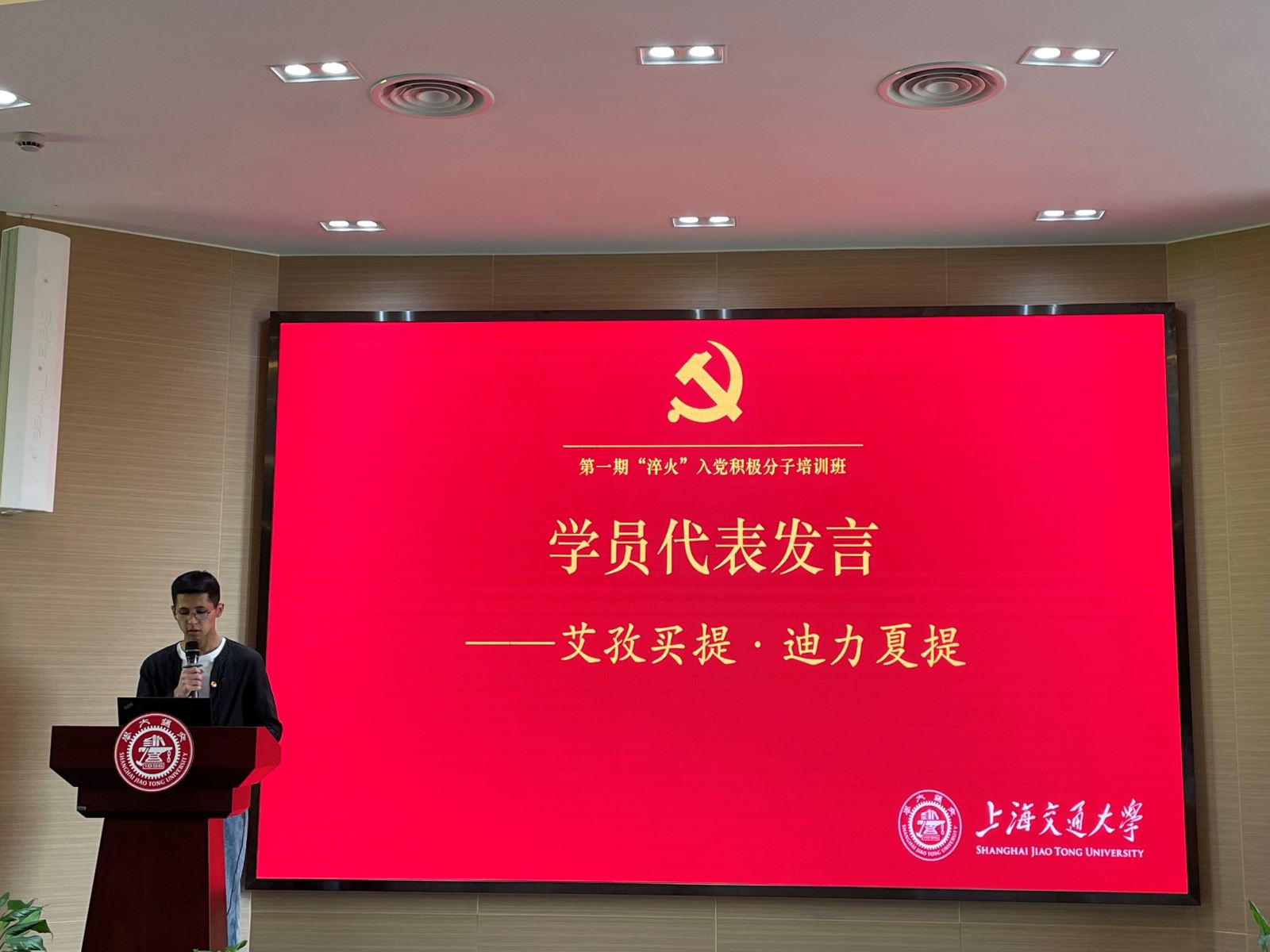 开元网页版2019级本科生艾孜买提•迪力夏提作为学员代表发言。他谈到,身为新疆同学,他切身体会到新疆在党的西部大开发战略下,逐渐走向繁荣的过程,因此更加坚定了向党组织靠拢的决心。在未来的学习和生活中,他也将勇担交大人的责任和使命,以实际行动践行全心全意为人民服务的宗旨。