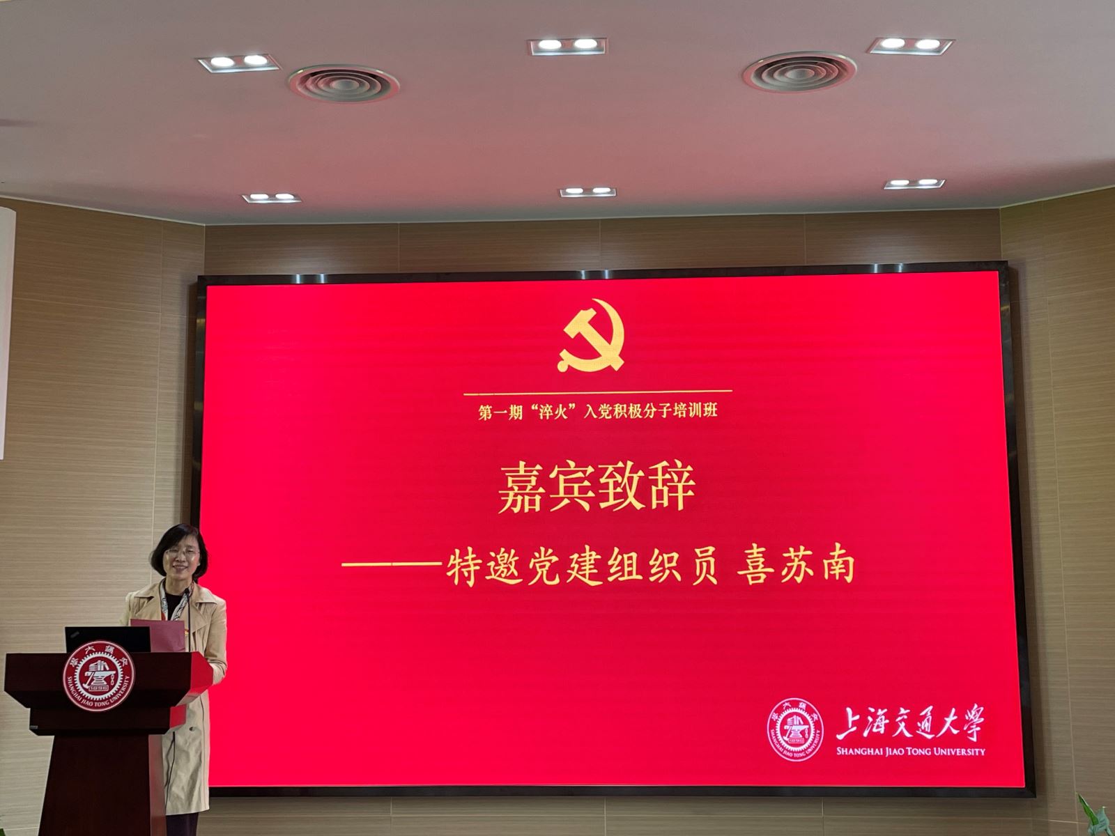 喜苏南作为特邀嘉宾致辞。她对培训班开班表示了热烈的祝贺,衷心祝愿各位学员通过党校的系统学习和今后的不懈努力,提升思想觉悟和党性修养,以党员标准对照个人言行,争取早日戴上光荣的党徽。
