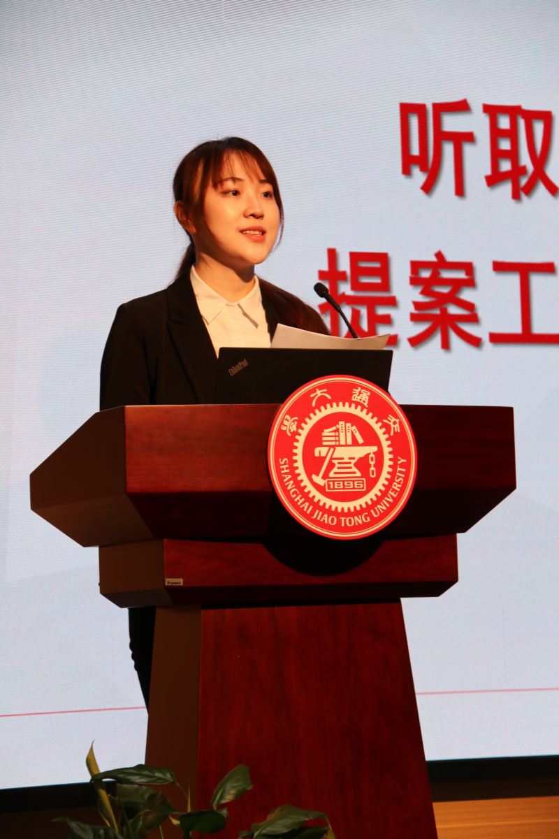 第十九届学生会主席团成员姚思瑜向大会作提案工作报告,从课程学习、交流项目、毕业去向、校园生活四个板块出发进行汇报。本次大会征集的提案与外院学子的学习生活息息相关,学院教务办、学工办等行政部门结合工作现状做出了细致回应,同时联系学校相关部处,进行及时反馈。