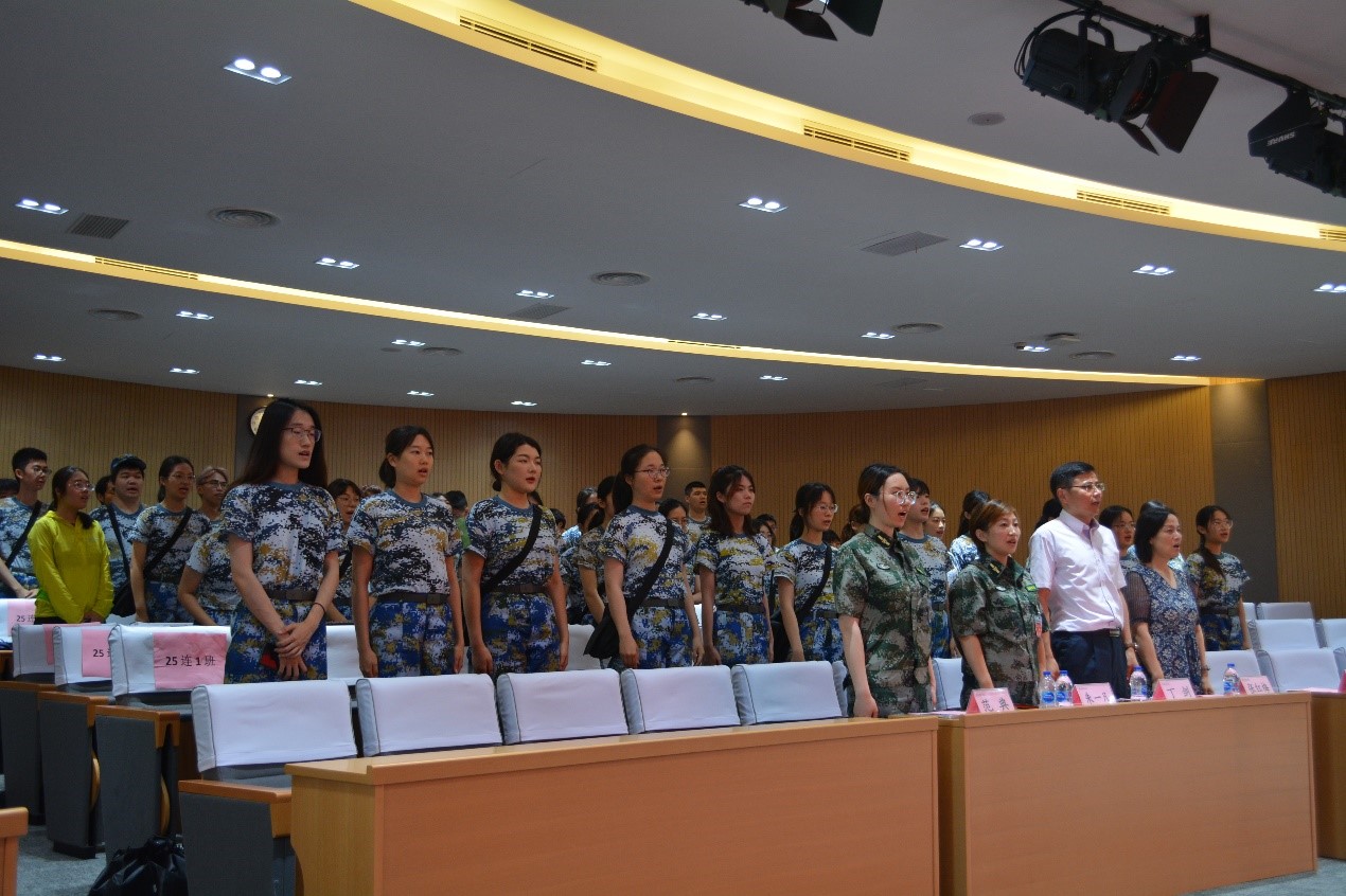 随后,参训学生欧阳嘉纪、孙安雯带领男女生合唱《团结就是力量》《强军战歌》等军旅歌曲,同学们意气风发,歌声响彻会场。